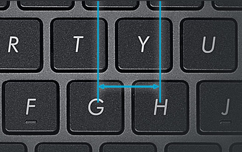 Razmak između sredina dva tastera u punoj veličini od 19,05 mm nudi najudobniju udaljenost između prstiju za kucanje. Nismo zaboravili površinu tastera od 0,15 mm koja prosto miluje svaki prst kao i responzivno i precizno kucanje koje pruža hod tastera od 1,5 mm.